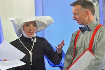 Jan Kulczycki jako portier w asyście chórku z Bliskiego Wschodu (fot. Jan Bogacz/TVP)